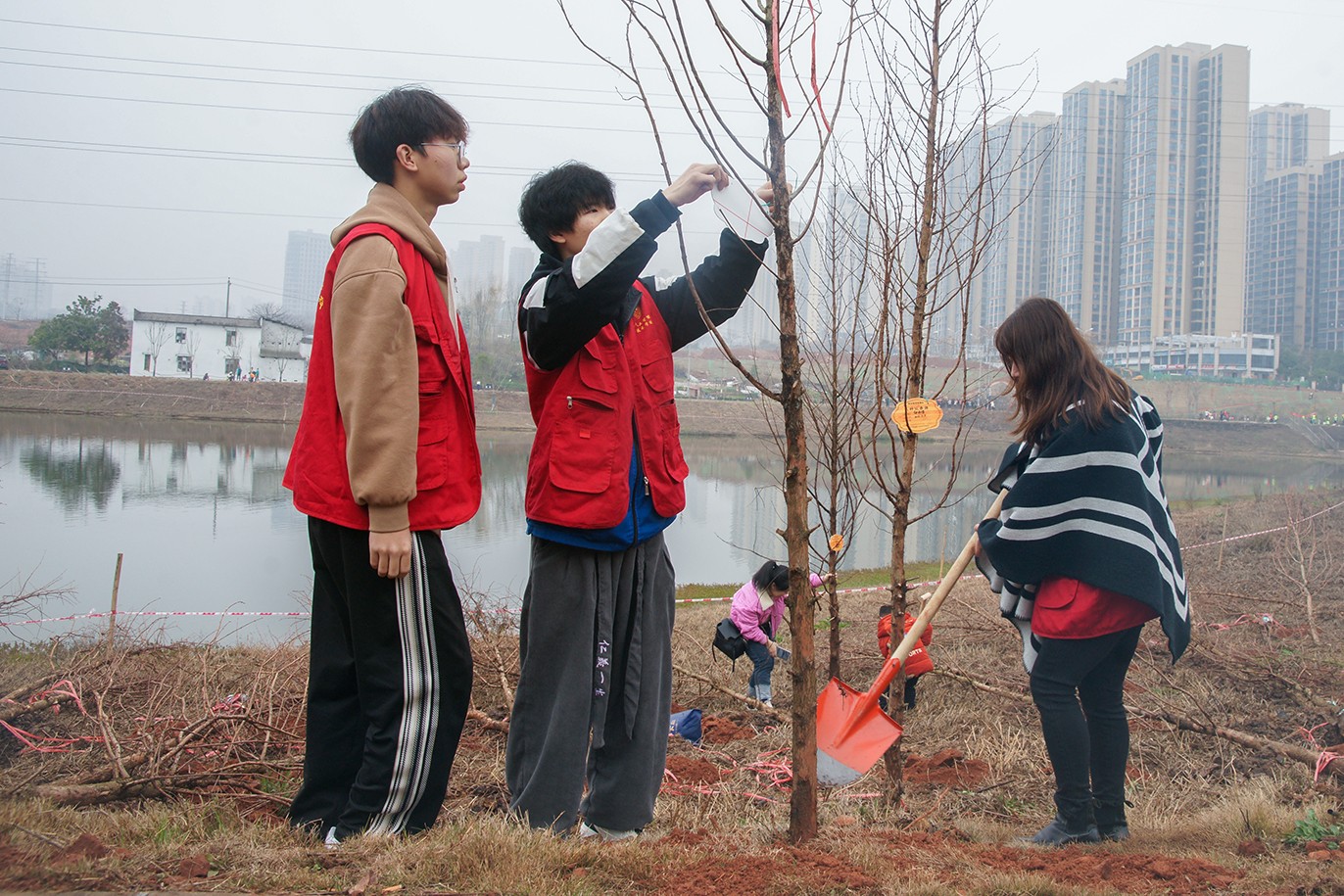 经过一个多小时的忙碌,一棵棵新栽的苗木迎风挺立,为初春的大地增添了新的生机和活力。大家集中在认领牌上写上自己的名字和美好愿望,以实际行动践行“绿水青山就是金山银山”的绿色发展理念,为生态文明建设贡献一份力量。