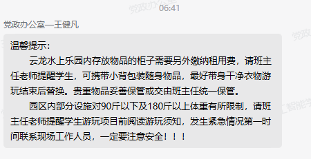 (班主任及教官入园陪同,确保安全)