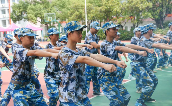 同学们在军训中进步